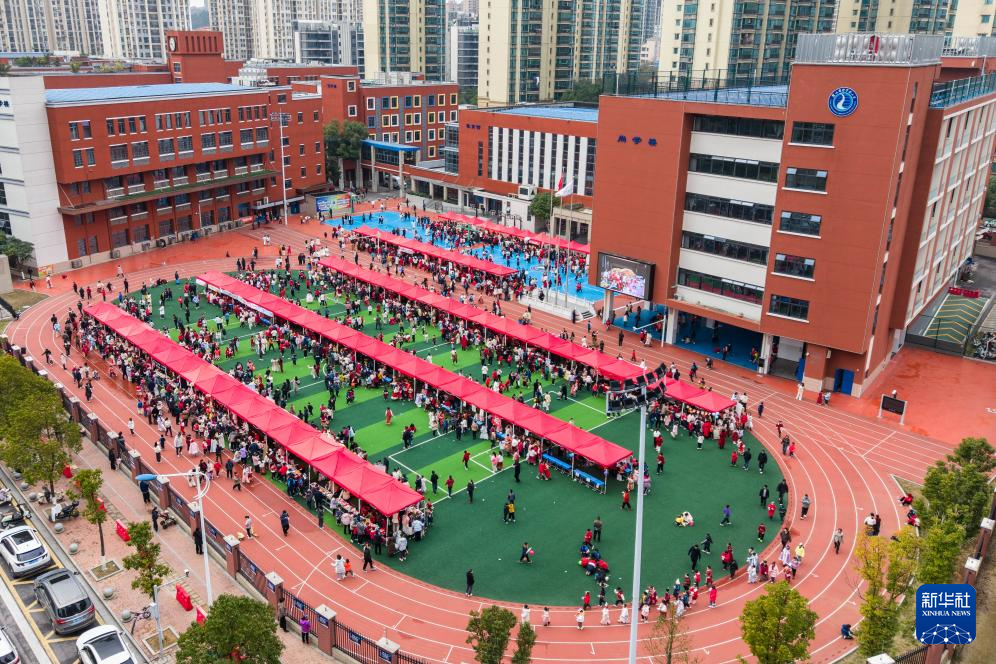 Der lebhafte Wohltätigkeitsbasar aus der Vogelperspektive. (Foto vom 4. März 2026, Chen Sihan/Xinhua)