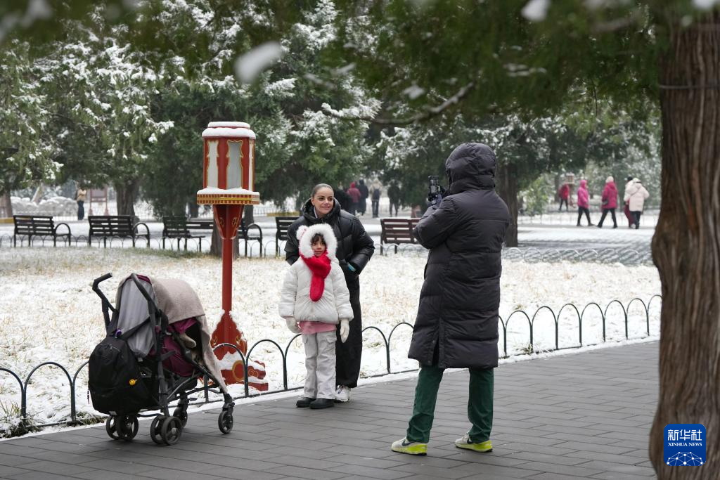 Auch ausländische Gäste lassen sich das Spektakel nicht entgehen. Sie bewundern die winterliche Pracht des Himmelstempels. (Foto: Chen Yehua/ Xinhua)