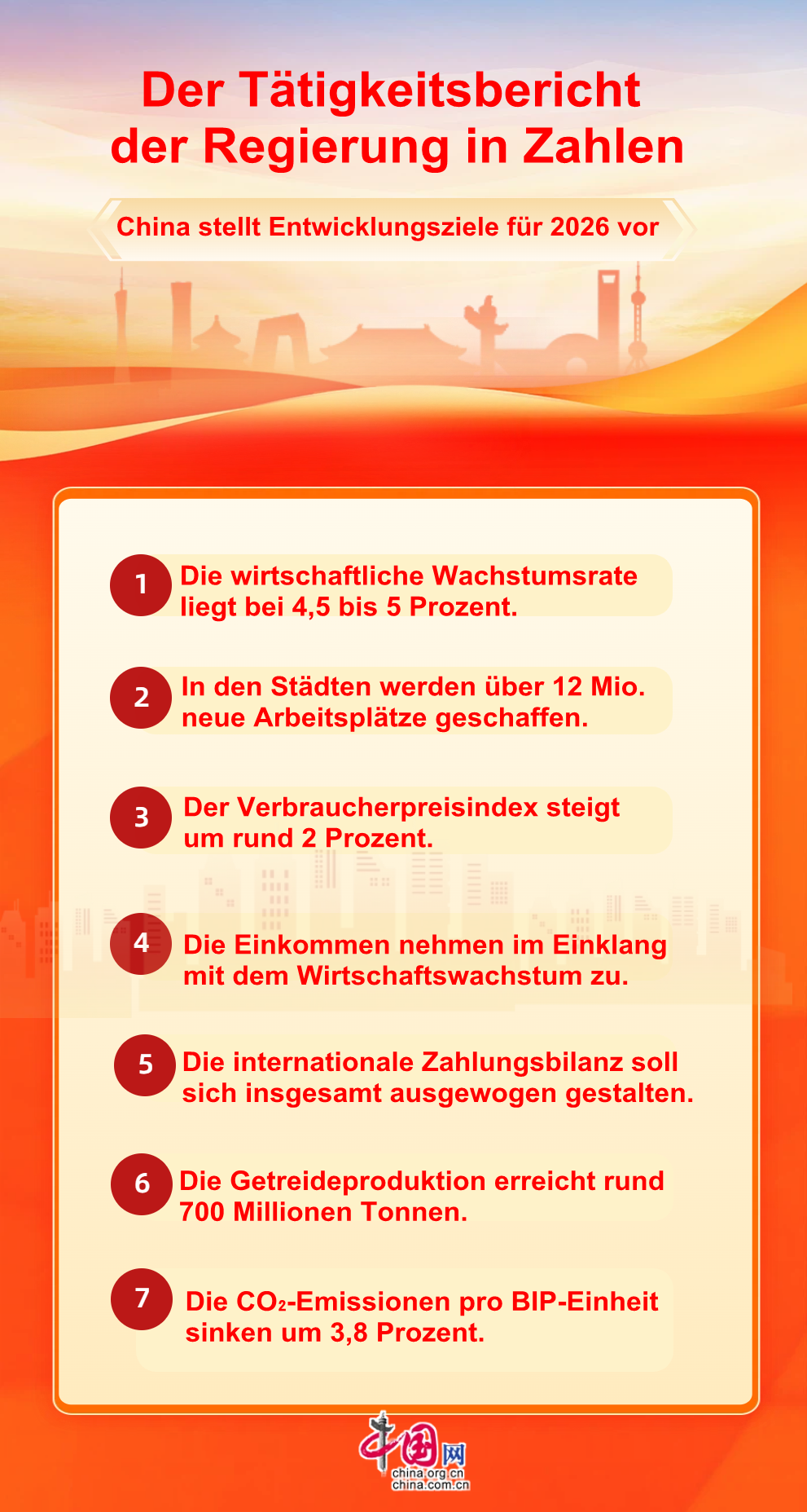 Der Tätigkeitsbericht der Regierung in Zahlen: China stellt Entwicklungsziele für 2026 vor