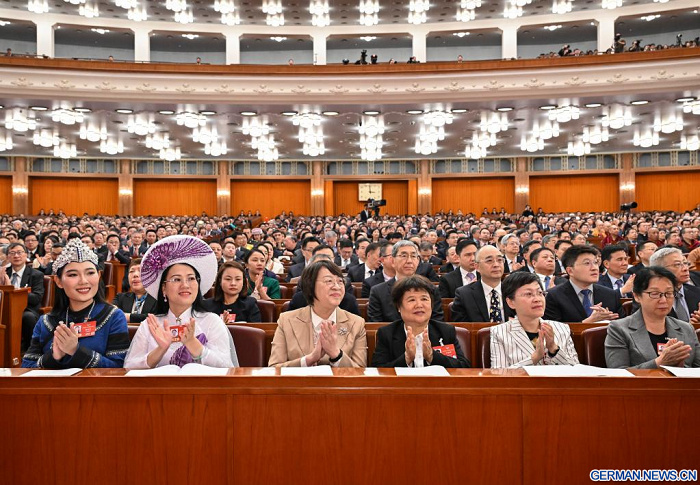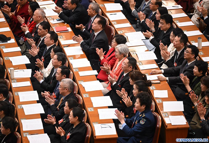Abgeordnete bei der dritten Plenarsitzung der vierten Tagung des 14. PKKCV-Landeskomitees in der Großen Halle des Volkes in Beijing am 8. März 2026 (Foto: Xinhua)