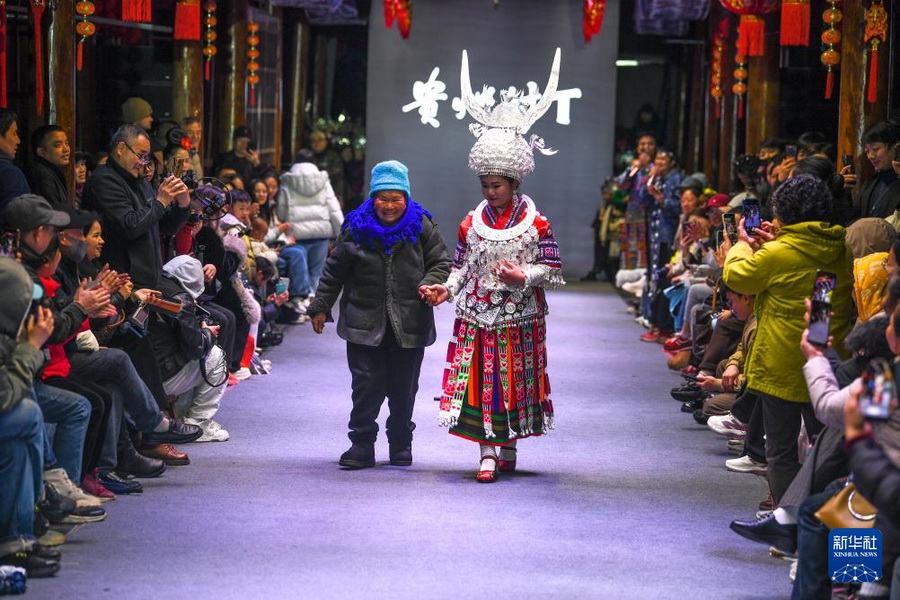 Stickerinnen präsentieren ihre handgefertigten Trachten und Stickereien auf der „Village T“-Bühne. (Foto: Xinhua / Yang Wenbin)