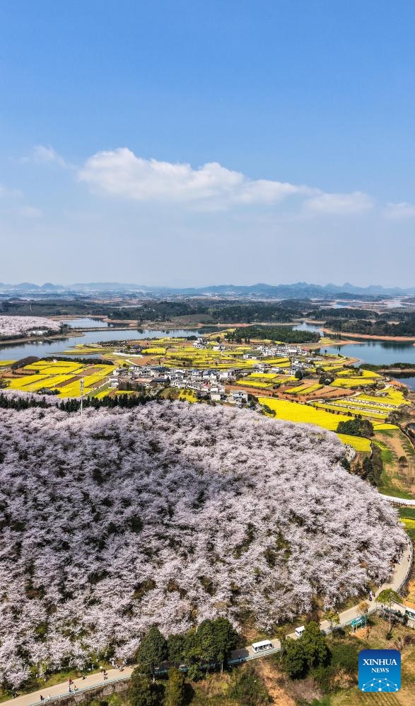 Die Luftaufnahme zeigt Kirschblüten in der Guian New Area. (11. März 2026, Xinhua)