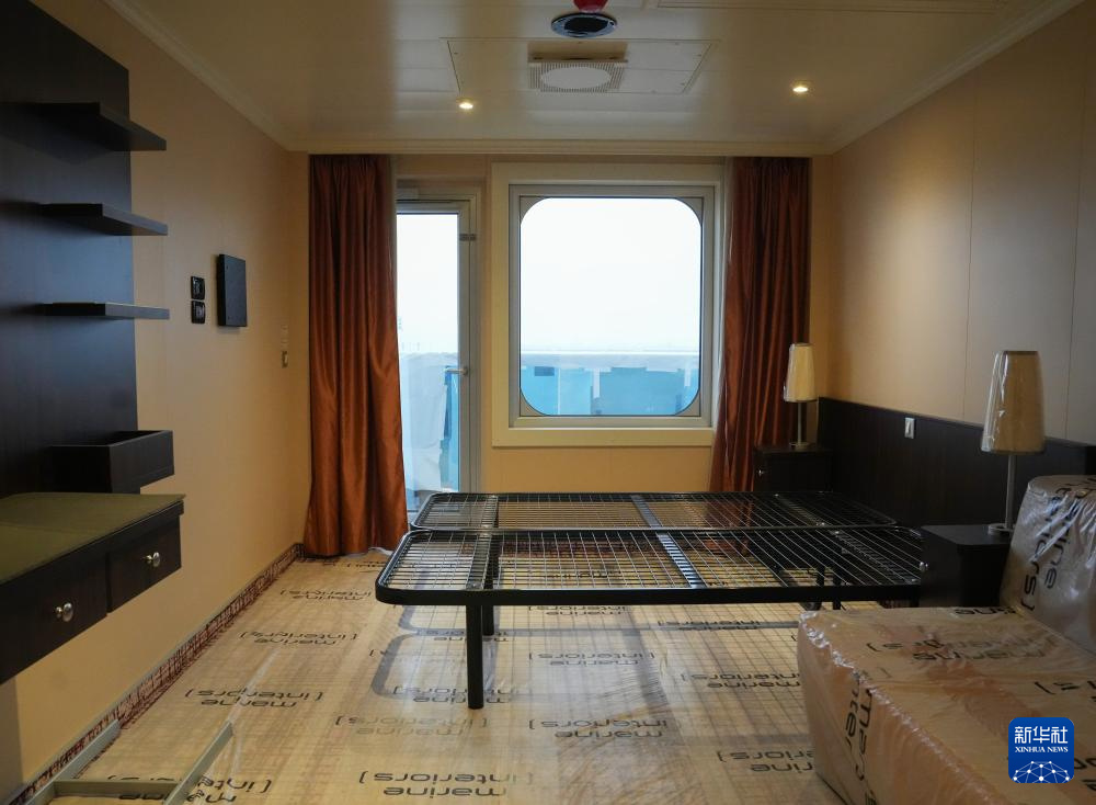 Eine Innenaufnahme des zweiten in China gebauten großen Kreuzfahrtschiffs „Adora Flora City“. Die Innenausbauarbeiten sind noch im Gange. (Fotos vom 16. März 2026, Ding Ting/Xinhua)