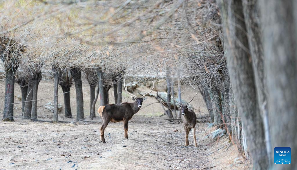 Im Dorf Gaiba im Bezirk Nedong der Stadt Shannan im Autonomen Gebiet Xizang in Südwestchina wurden erneut Weißlippenhirsche gesichtet, eine in China national streng geschützte Tierart der ersten Kategorie. (Foto vom 15. März 2026, Jigme Dorje/Xinhua)