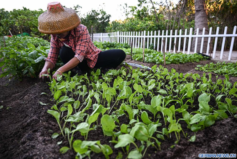 Eine Landwirtin pflanzt Setzlinge auf der Insel Zhaoshu in Sansha in der südchinesischen Provinz Hainan, 19. März 2026. (Quelle: Xinhua/Pu Xiaoxu)