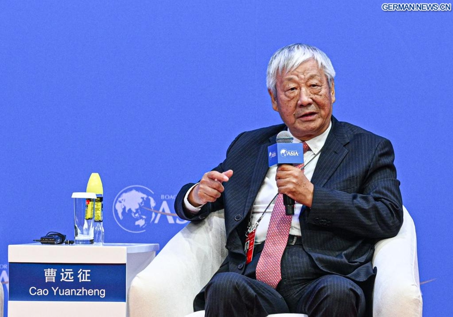 Cao Yuanzheng, Gastprofessor für Managementpraxis an der Fakultät für Wirtschaft und Management der Tsinghua-Universität, spricht bei einer Podiumsdiskussion zum Thema „Freihandelshäfen: Chancen und Aufgaben als Tore der Öffnung“ während der Jahreskonferenz 2026 des Boao-Forums für Asien (BFA) in Boao in der südchinesischen Provinz Hainan, 24. März 2026. (Quelle: Xinhua/Pu Xiaoxu)