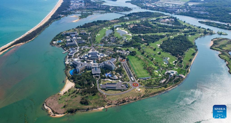Das Luftbild zeigt die Demonstrationszone mit Null-CO₂-Emissionen Boao. (19. März 2026, Xinhua)
