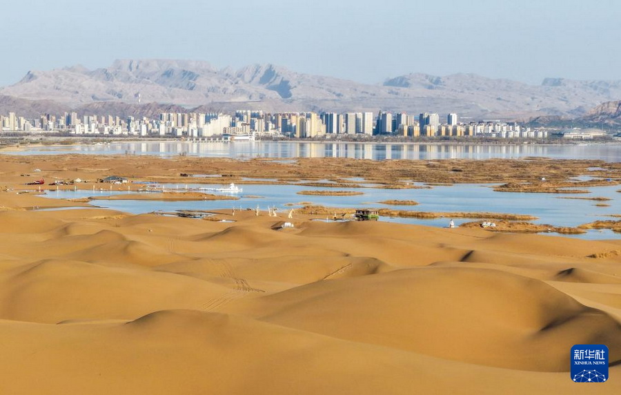 Die malerische Kulisse, die der Wuhai-See und die Wüste gemeinsam bilden. (Foto: Xinhua/Lian Zhen)