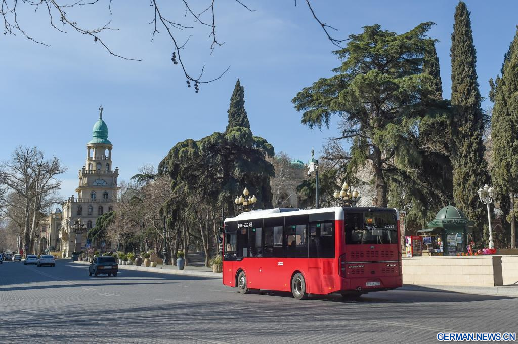 Busse chinesischer Marke auf Straße in Ganja in Aserbaidschan