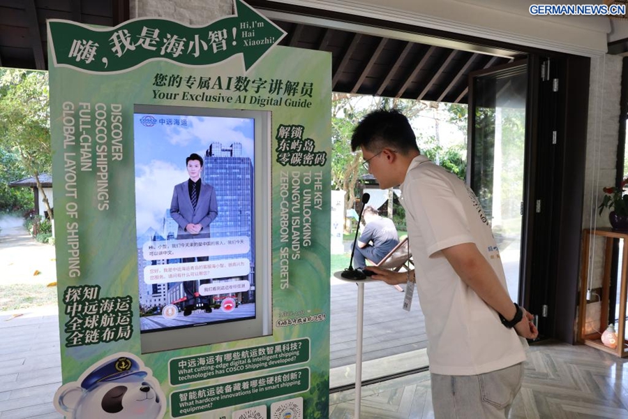 Ein Mitarbeiter unterhält sich mit einem KI-gestützten digitalen Dozenten auf der Jahreskonferenz 2026 des Boao-Forums für Asien (BFA) in der südchinesischen Provinz Hainan, 25. März 2026.(Quelle: Xinhua/Wang Yiliang)