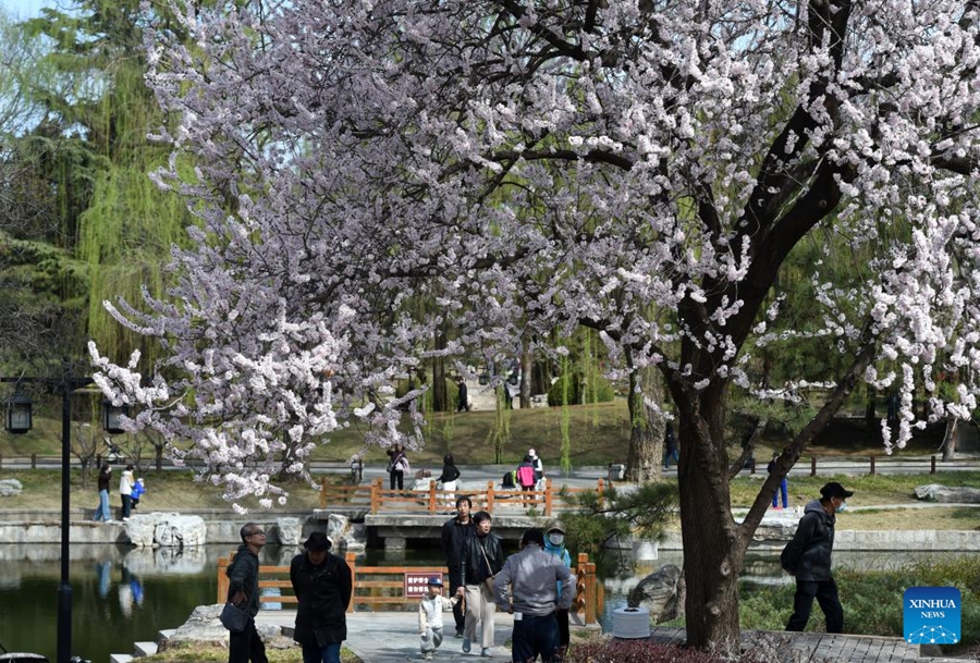 Touristen genießen die Frühlingslandschaft in Beijing