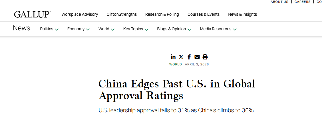 Die Umfrage wurde von Gallup im Jahr 2025 in über 130 Ländern durchgeführt. Sie verglich die globale Führungsrolle Chinas, der USA, Deutschlands und Russlands. Der Bericht weist darauf hin, dass die Erhebung vor mehreren bedeutenden Ereignissen zu Beginn des Jahres 2026 stattfand – darunter der Austritt der USA aus 66 internationalen Organisationen sowie die Ende Februar begonnenen Militäraktionen gegen den Iran.