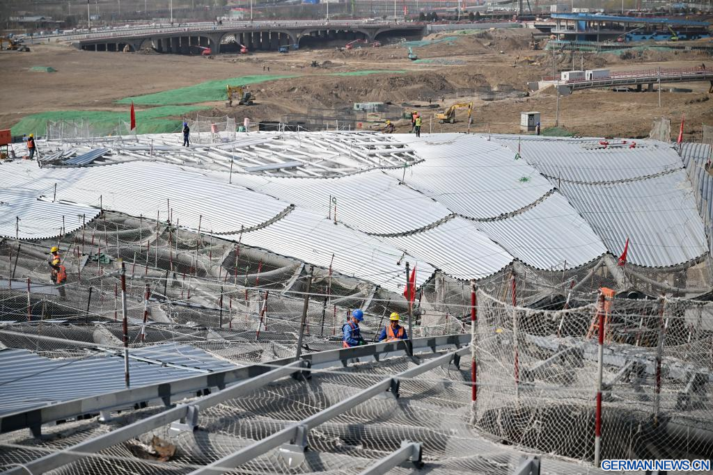 Die Gesamtbaufläche des städtischen Kulturplatzes beläuft sich auf mehr als 80.000 Quadratmeter. Er umfasst ein Theater, einen Konzertsaal und eine Galerie. Als wichtiges öffentliches kulturelles Wahrzeichen in der Xiong'an New Area vereint dieses Projekt Funktionen für kulturelle Präsentation, Freizeit und Unterhaltung. Nach der Fertigstellung soll der Platz nicht nur das alltägliche Leben der Stadtbewohner bereichern, sondern auch die städtischen Einrichtungen in der Start-up-Zone verbessern. (Quelle: Xinhua/Mu Yu)