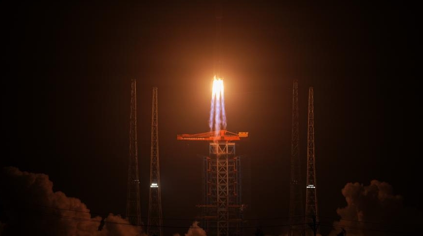 China hat am Dienstag eine Trägerrakete vom Typ „Langer Marsch-8“ gestartet und damit 18 Internetsatelliten ins All befördert.