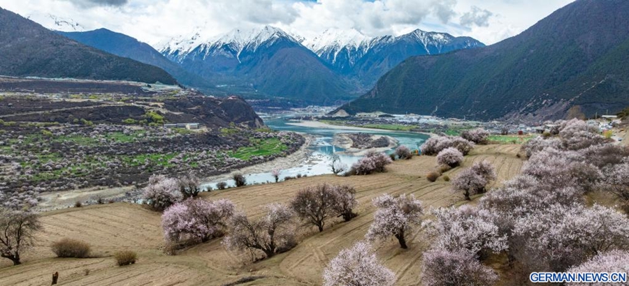 Pfirsichblüten fördern „Frühlingswirtschaft“ in Nyingchi im südwestchinesischen Autonomen Gebiet Xizang