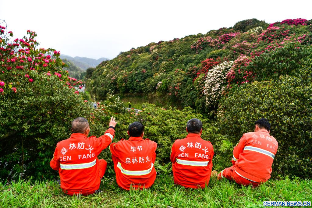 Die Blütensaison der Azaleen ist für die Waldhüter des Baili Azalea Nature Reserve die geschäftigste Zeit des Jahres. Da täglich Zehntausende von Touristen hierherkommen, um die Blütenpracht zu bewundern, ist die Waldbrandprävention zur obersten Priorität in der täglichen Arbeit der Waldhüter geworden.