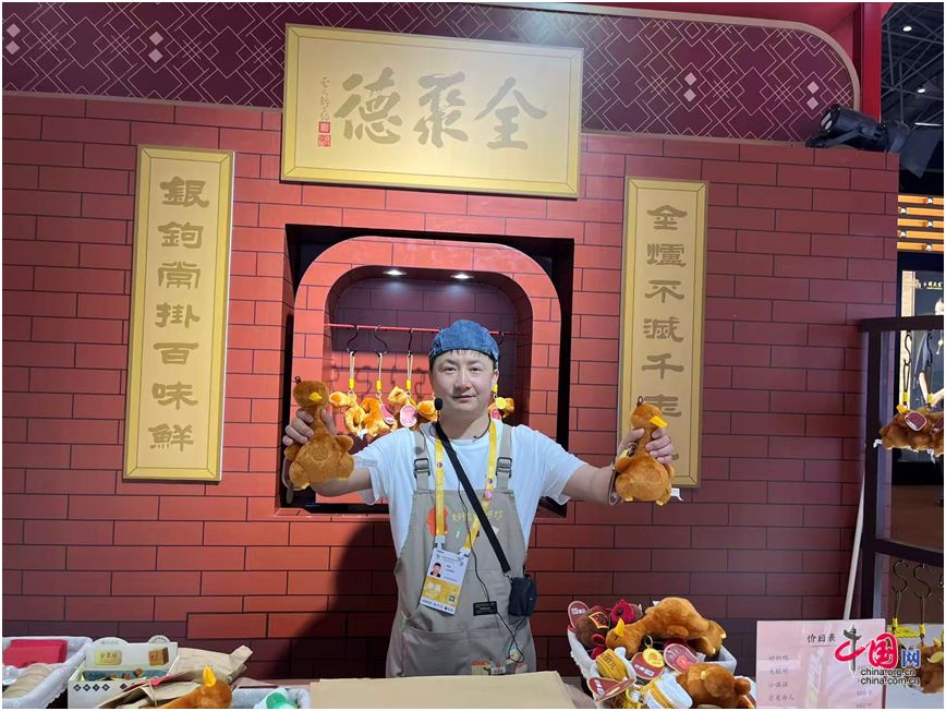 Die Quanjude Group, die vor allem für die Peking-Ente bekannt ist, schafft zum Beispiel einen trendigen Erlebnisraum für die hundertjährige Traditionsmarke. Die vor allem bei jungen Menschen beliebte Peking-Ente-Puppe ist auch hier zu sehen. Das ist ein Produkt, das sich an den Trend des emotionalen Konsums anpasst. Die Entenfigur heißt „Hao De Ya“ (klingt wie „OK“ und „Gute Ente“). Nach ihrer „Geburt“ im letzten Jahr war sie bereits mehrmals ausverkauft. Dazu passend gibt es noch Motive von Lauchzwiebeln, Dip-Saucen und dünnen Pfannkuchen, die das Gesamtessen der Peking-Ente simulieren. Viele Besucher kommen vor Ort, um die kulturkreativen Produkte dieses Gastronomieunternehmens zu entdecken und daran Freude zu haben.