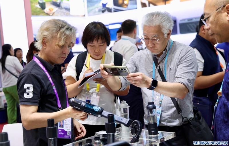 Ausländische Käufer informieren sich über einen Staubsauger auf der 139. Chinesischen Import- und Exportmesse in Guangzhou in der südchinesischen Provinz Guangdong, 15. April 2026. (Quelle: Xinhua/Lu Hanxin)