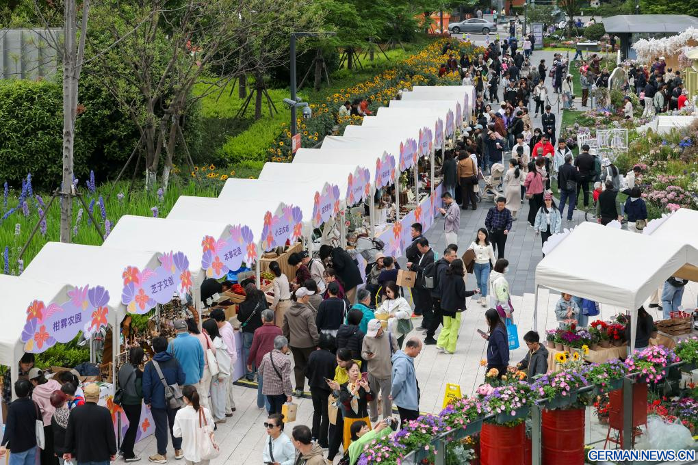 Menschen besuchen eine Blumenmesse im Bezirk Jing'an in Shanghai in Ostchina, 18. April 2026. (Quelle: Xinhua/Wang Xiang)