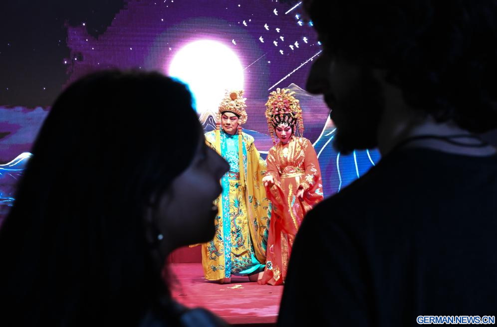 Besucher der „Macao Night“ in Madrid genießen eine Aufführung der chinesischen Oper. (Foto: Xinhua/Cheng Min)