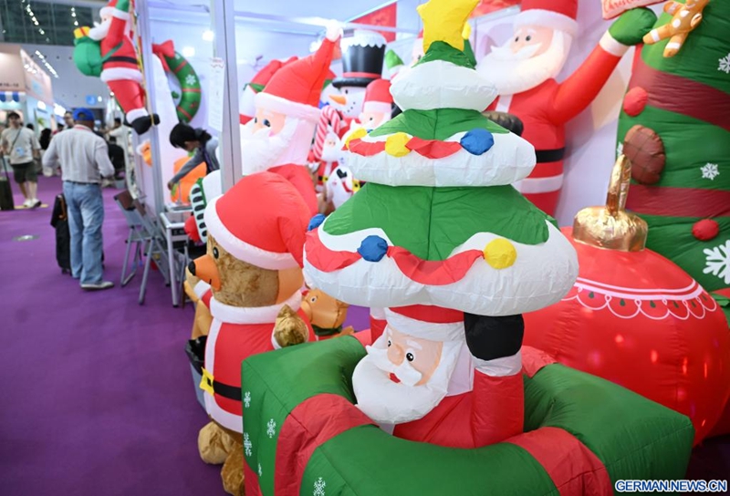 Weihnachtsdekorationen sind auf der 139. Chinesischen Import- und Exportmesse (Kanton-Messe) in Guangzhou in der südchinesischen Provinz Guangdong ausgestellt, 23. April 2026. Die zweite Phase der 139. Kanton-Messe begann hier am Donnerstag.