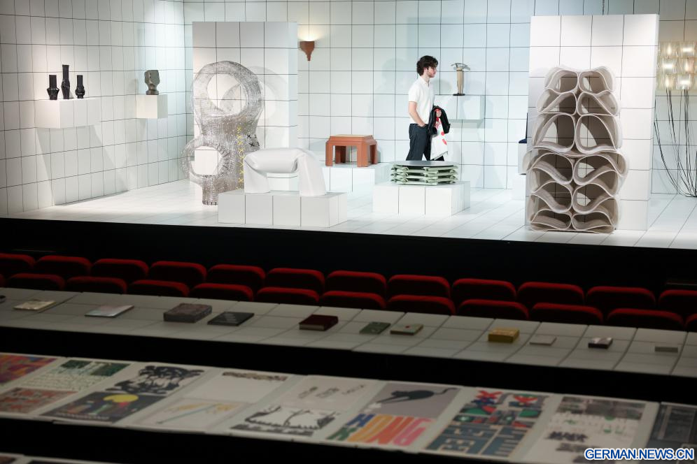 Ein Besucher betrachtet Exponate der China Week 2026 während der Mailänder Designwoche im Stadtteil Paolo Sarpi in Mailand, Italien, 23. April 2026. (Quelle: Xinhua/Li Jing)