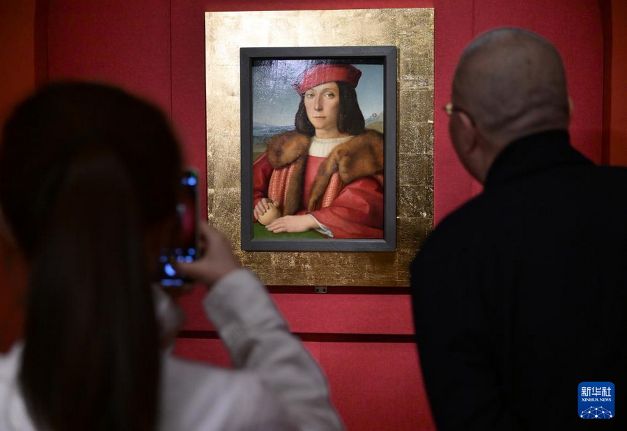 Vor dem Werk „Junger Mann mit Apfel“ von Raffael wird ins Visier genommen. Das Gemälde ist ein Paradebeispiel für die Porträtkunst des florentinischen Hochrenaissance-Meisters. (Foto: Li He/ Xinhua)